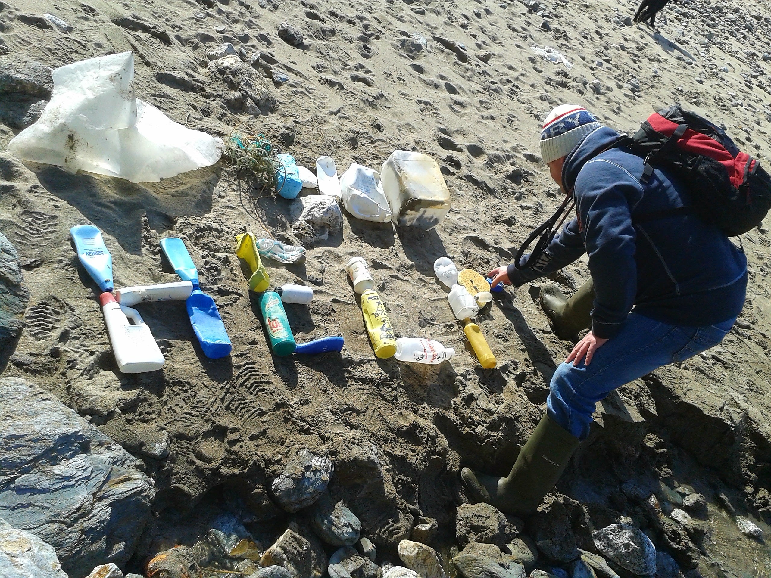 Everything changed after the New Year storms of 2014. In February, while walking on Perranporth beach, I was struck by the massive amounts of plastic washed ashore. Tony and I wrote "HELP" in the sand using bottles we collected. Since that trip, Iβve spent hours and hours cleaning Cornish beaches, removing plastic, rope and often focussing on microplastics.
